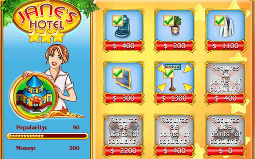 Παίξτε το Jane's Hotel! Βοηθήστε την Jane να κάνει το όνειρό της πραγματικότητα και να χτίσει ένα όμορφο 5 αστέρων ξενοδοχείο στο Jane's Hotel!
